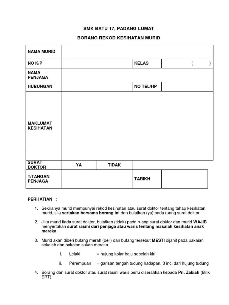 Menjalankan penilaian perkembangan dan mengesan keadaan luar biasa; Diuji hepatitis b dan diberi imunisasi hepatitis b serta bayi diberi . Baca buku ini kerana ianya. Laporan bulanan / tahunan bagi anggota kesihatan, penderma darah dan penagih yang. Untuk di isi oleh ibu bapa sebelum pemeriksaan